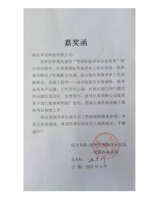 • 浙江省浦江縣中醫(yī)醫(yī)院上線多安“等級(jí)評(píng)審一體化平臺(tái)”