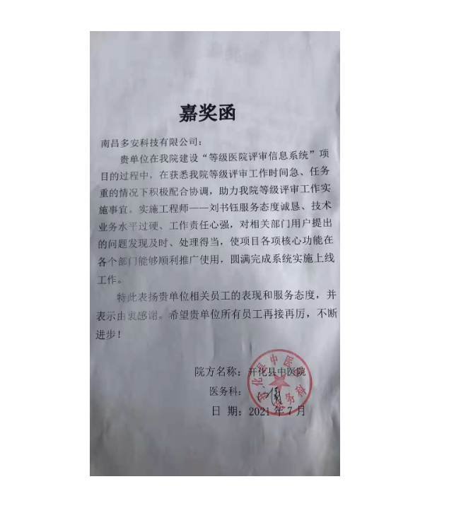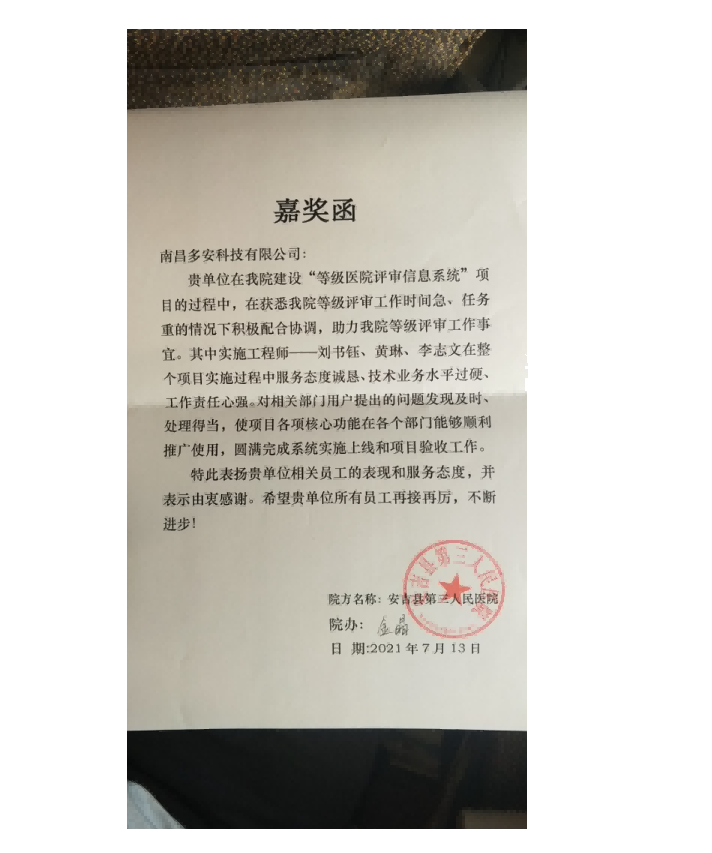 • 合作共贏+1,撫州三院上線多安等級(jí)醫(yī)院評(píng)審系統(tǒng)
